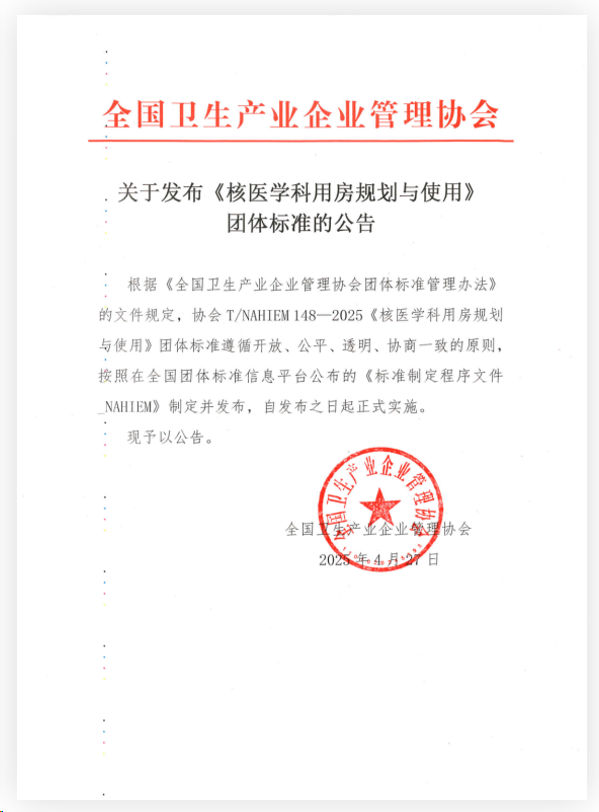 T/NAHIEM 148—2025《核医学科用房规划与使用》团体标准发布,中科核安助力行业规范化建设